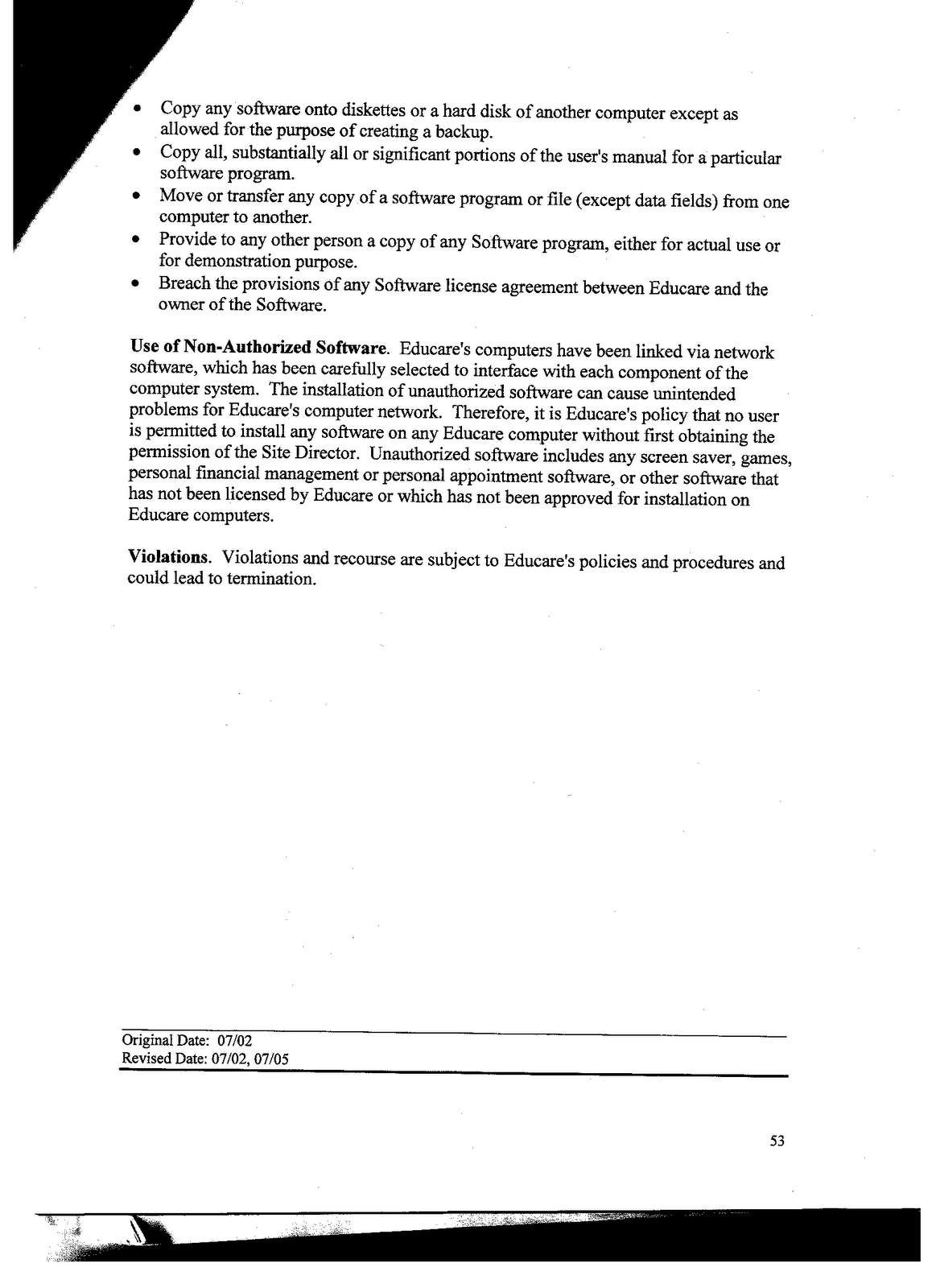 Within the policy it does remind users the importance of confidentiality and to be aware of the potential for viruses that could be downloaded into Educare computers via Internet or e-mail access. Though it is not written in the policy there is a message that does surface when setting up email accounts that informs users that emails may be monitored. Personnel emails are not prohibited, but they are restricted for personal time such as before and after work and breaks. They may not be prohibited by Educare, but the email sign in sites are blocked by OPS. This can be challenging because I have had times when I have had information related to work on my personal e-mail and I am unable to access it at school.
